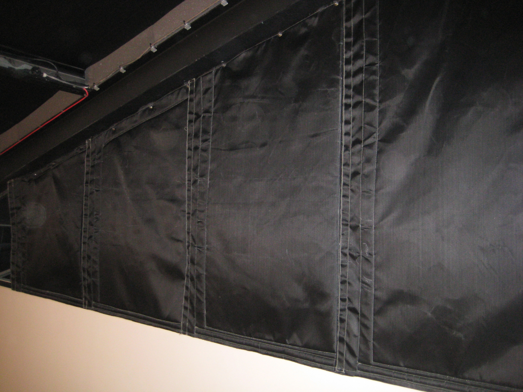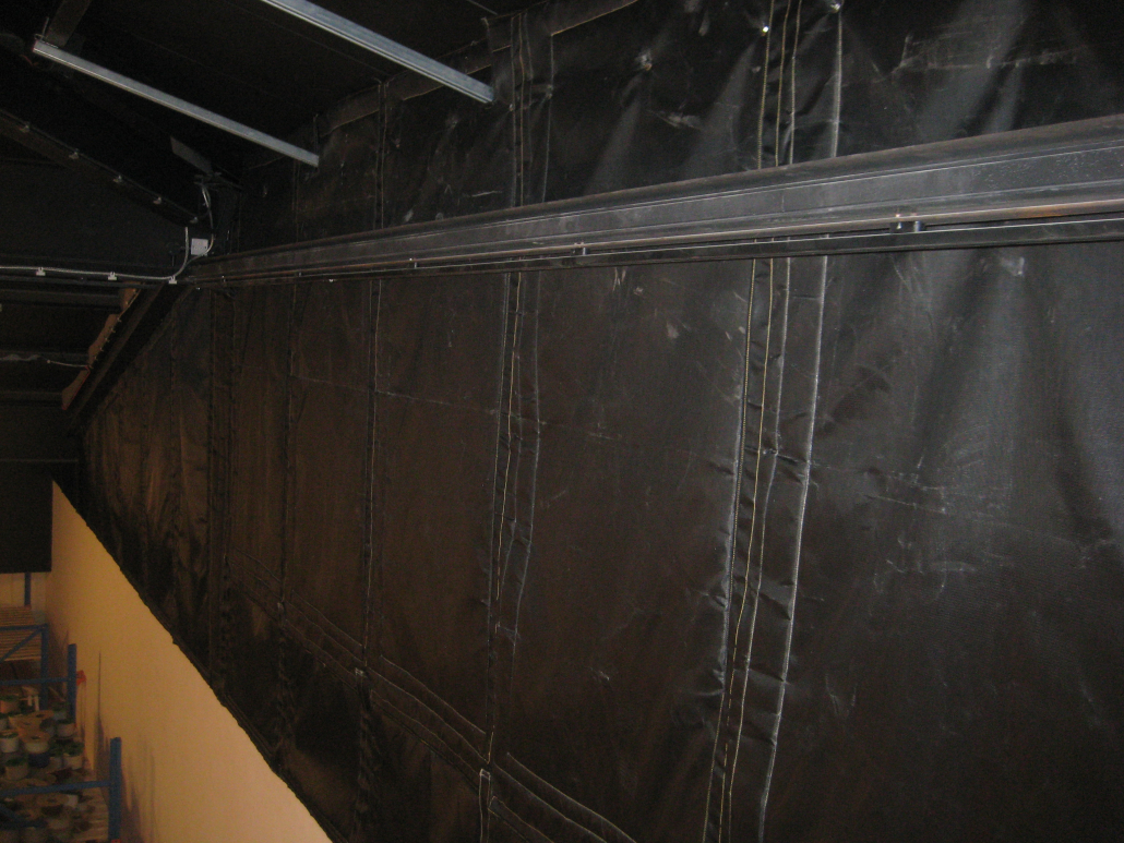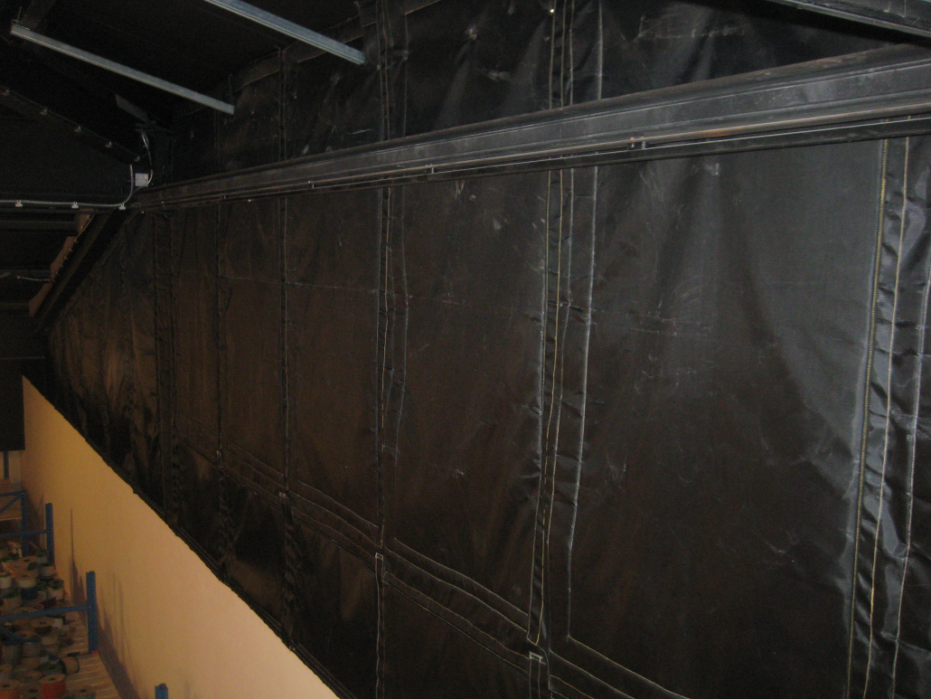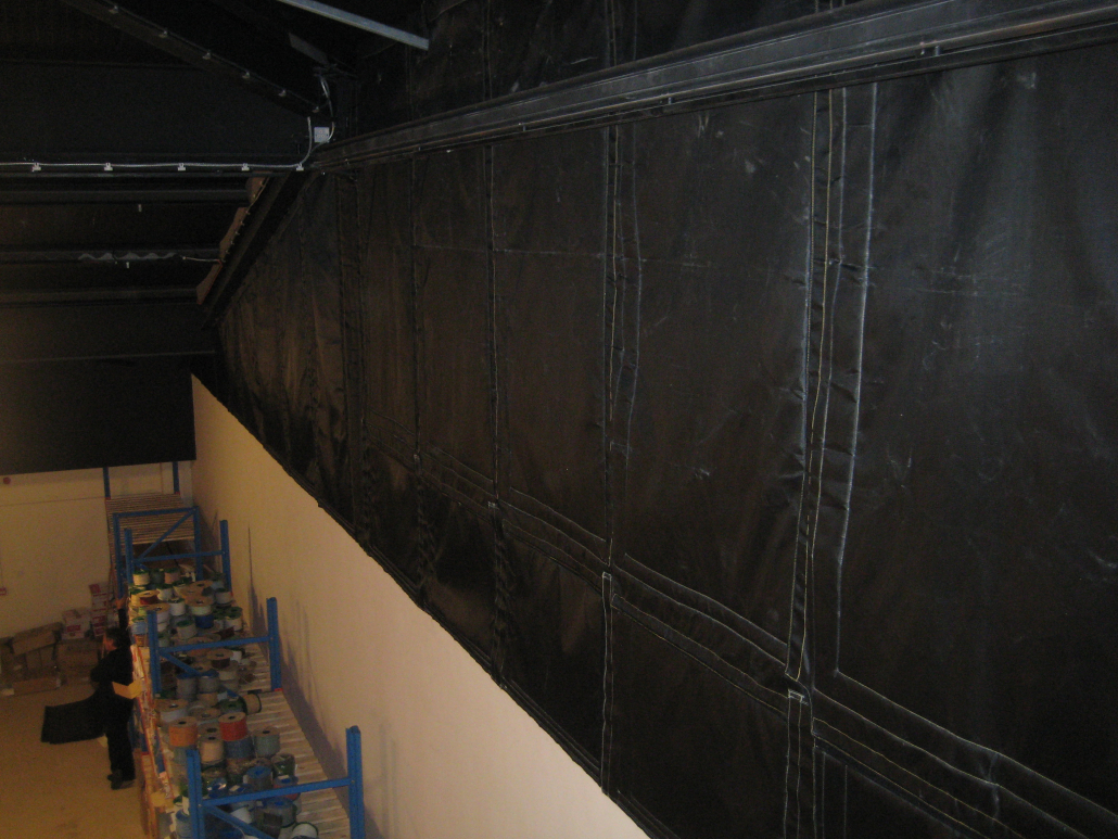 Our acoustic curtains can be made to almost any bespoke size. There is normally an advisable size cut off limit at approx. 2 m x 1 m, one for safe use of handling when fitting, and two, to get under our machine. However, this doesn’t stop a large area from being covered as any acoustic curtain can be joined together. We generally achieve this be using sew on type high temperature Velcro.